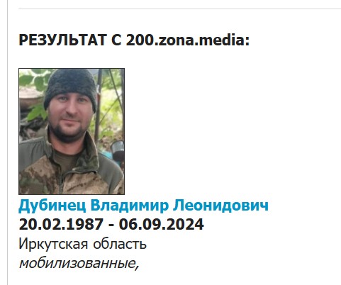 Скриншот сообщения о гибели