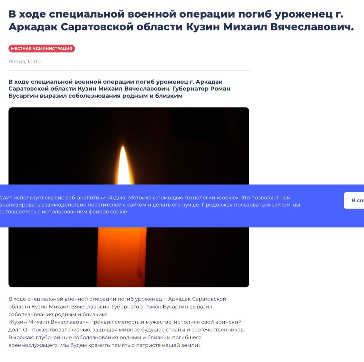 Дата сообщения о гибели: