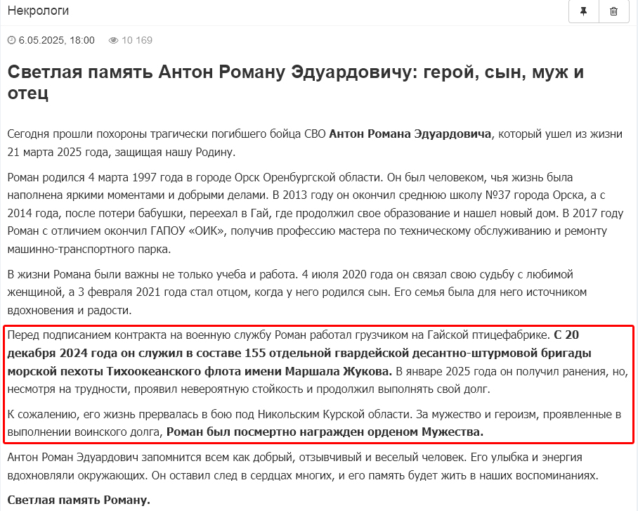 Скриншот сообщения о гибели