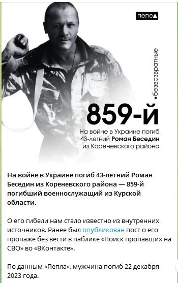 Скриншот сообщения о гибели