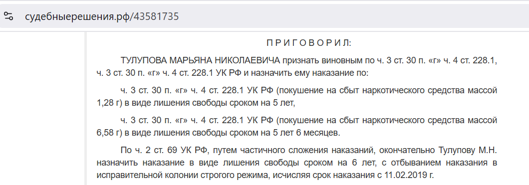 Был осужден на 6 лет за оборот наркотических средств (Ст 228 УК РФ)