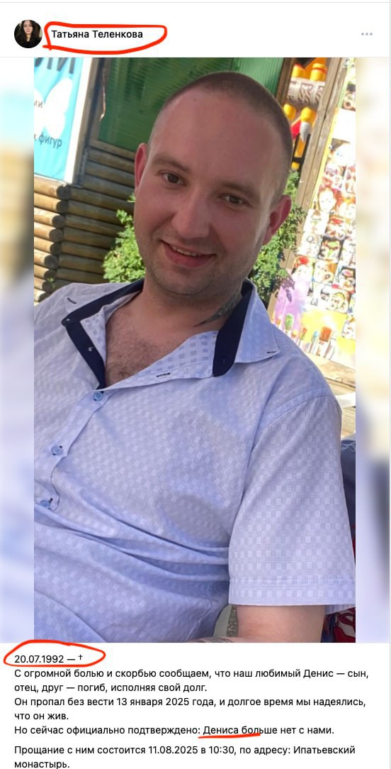 Дата сообщения о гибели:
