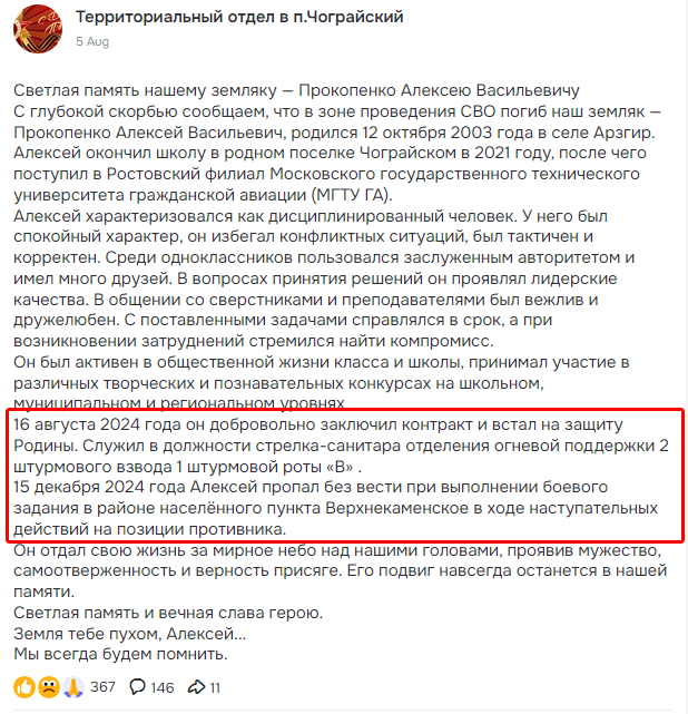 Дата сообщения о гибели: