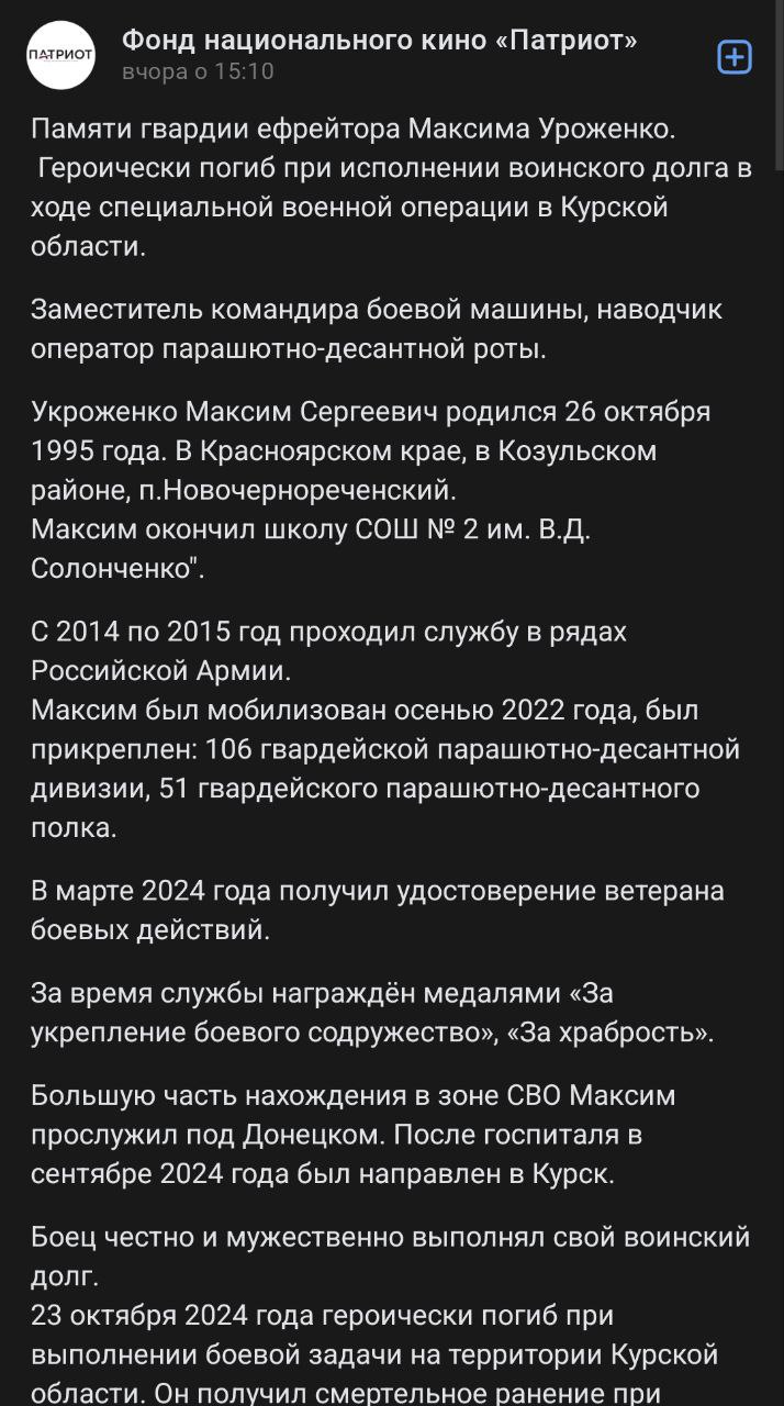 Дата сообщения о гибели: 03.09.2025