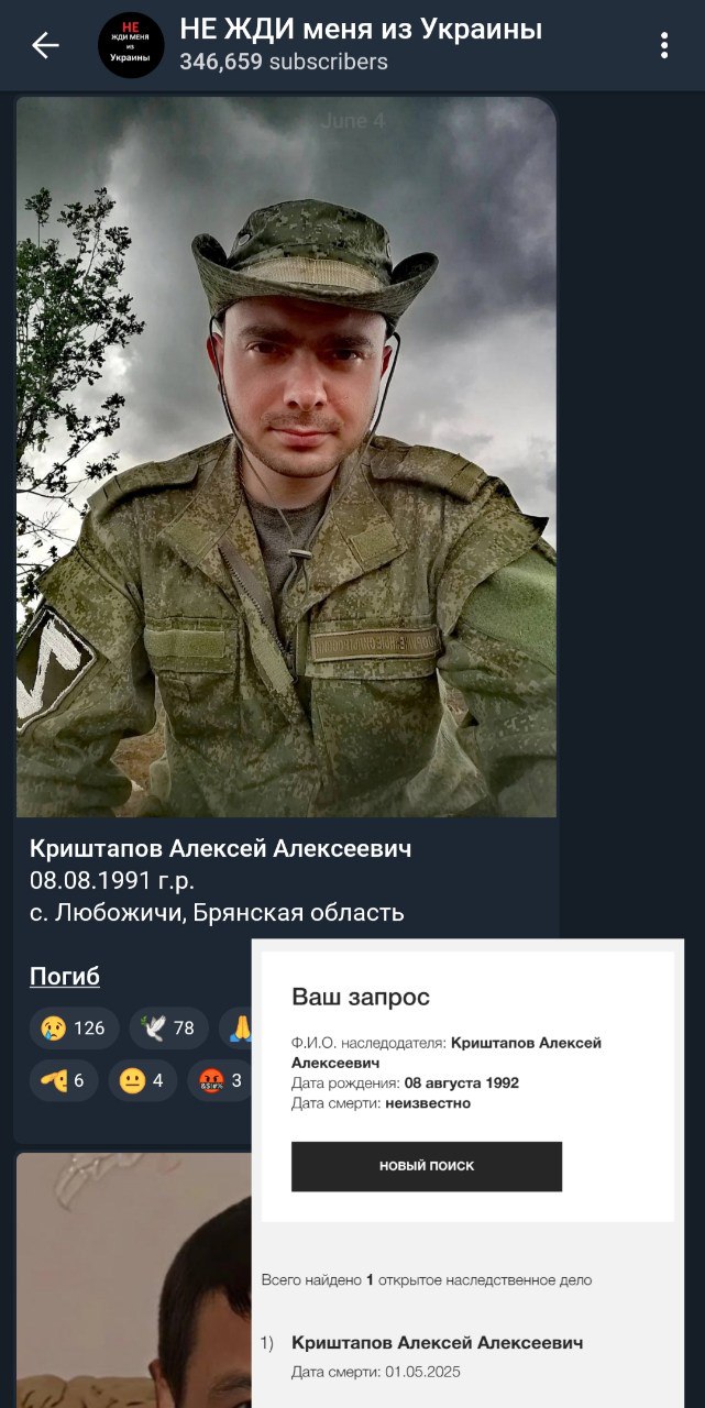 Дата сообщения о гибели: