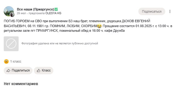 Дата сообщения о гибели: