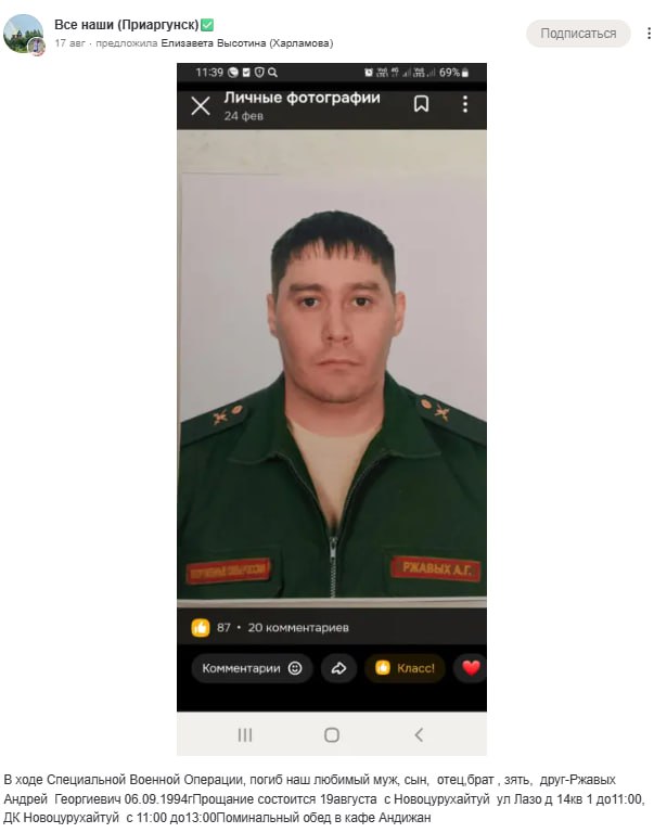 Дата сообщения о гибели: