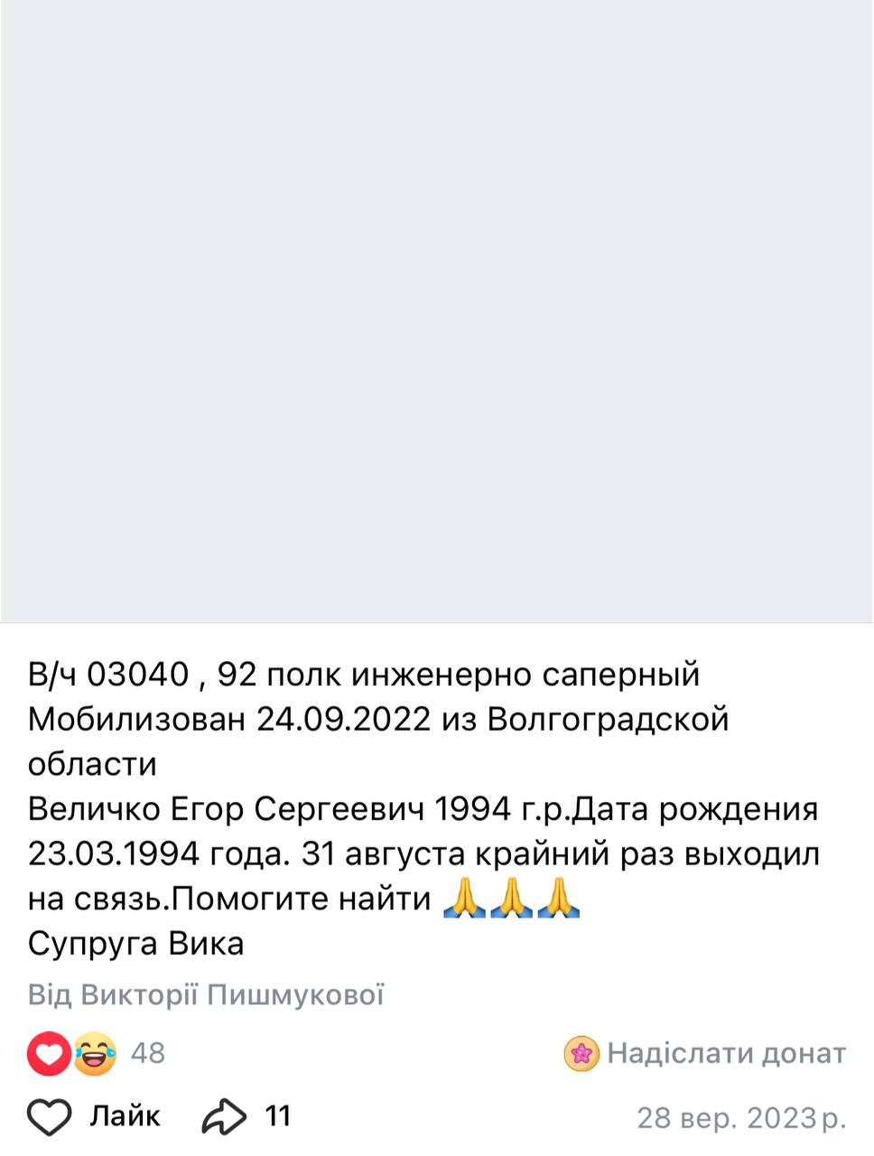 Дата сообщения о гибели: