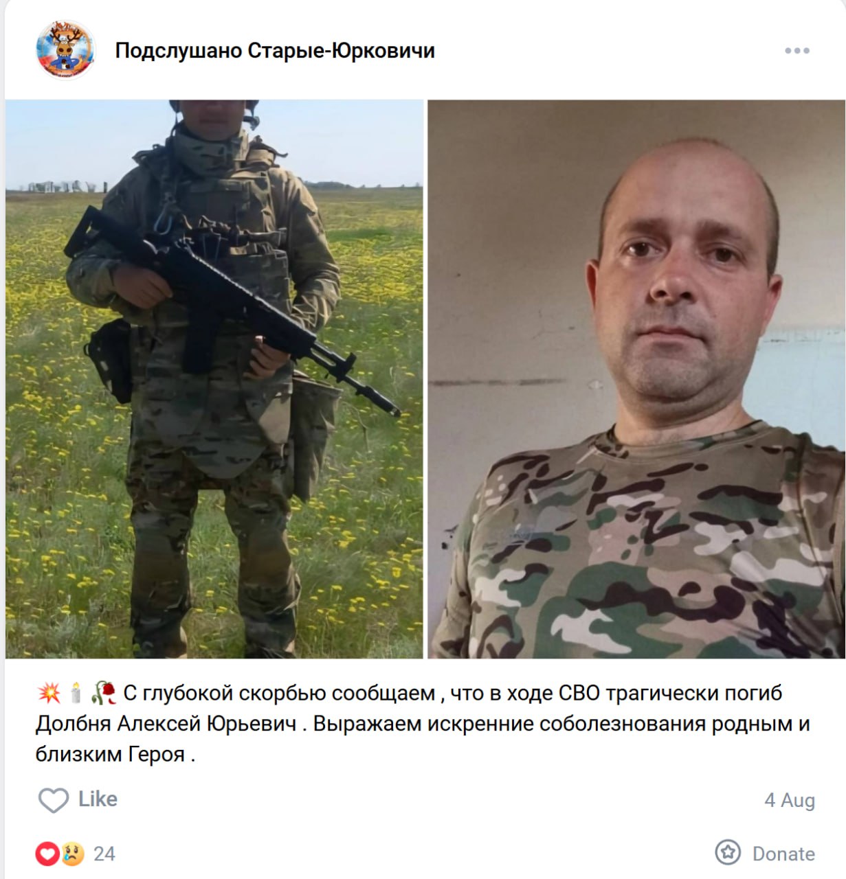 Дата сообщения о гибели:
