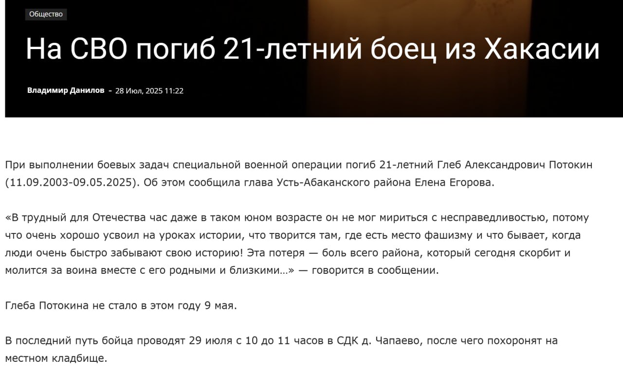 Дата сообщения о гибели: