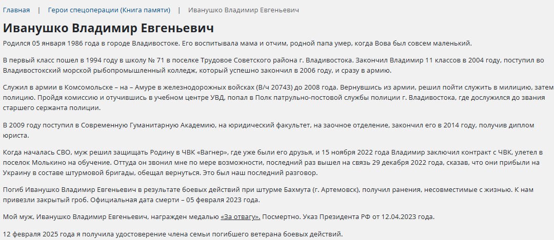 Подробные данные по данному погибшему
