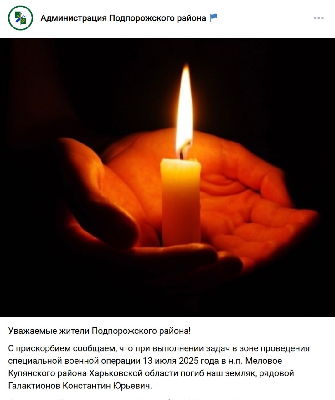 Дата сообщения о гибели: