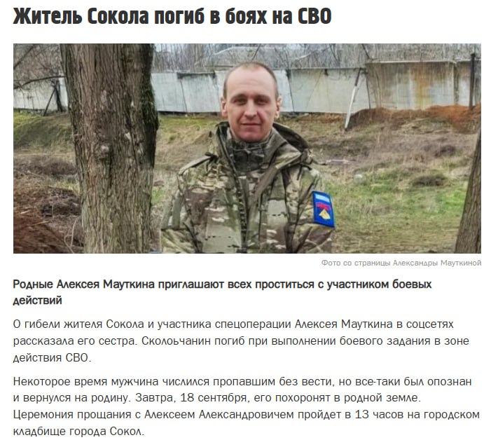 Дата сообщения о гибели: