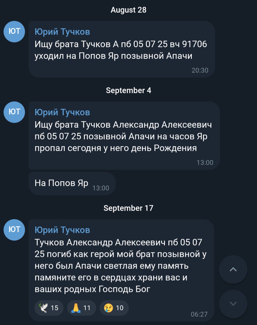 Дата сообщения о гибели: