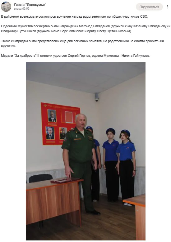 Статус: Подробные данные по данному погибшему получены и обрабатываются.