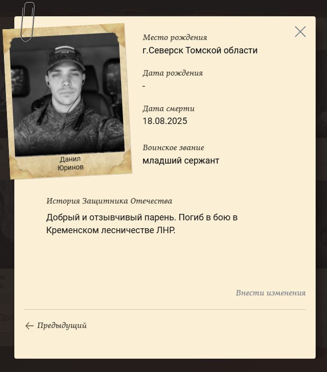 Статус: Подробные данные по данному погибшему получены и обрабатываются.