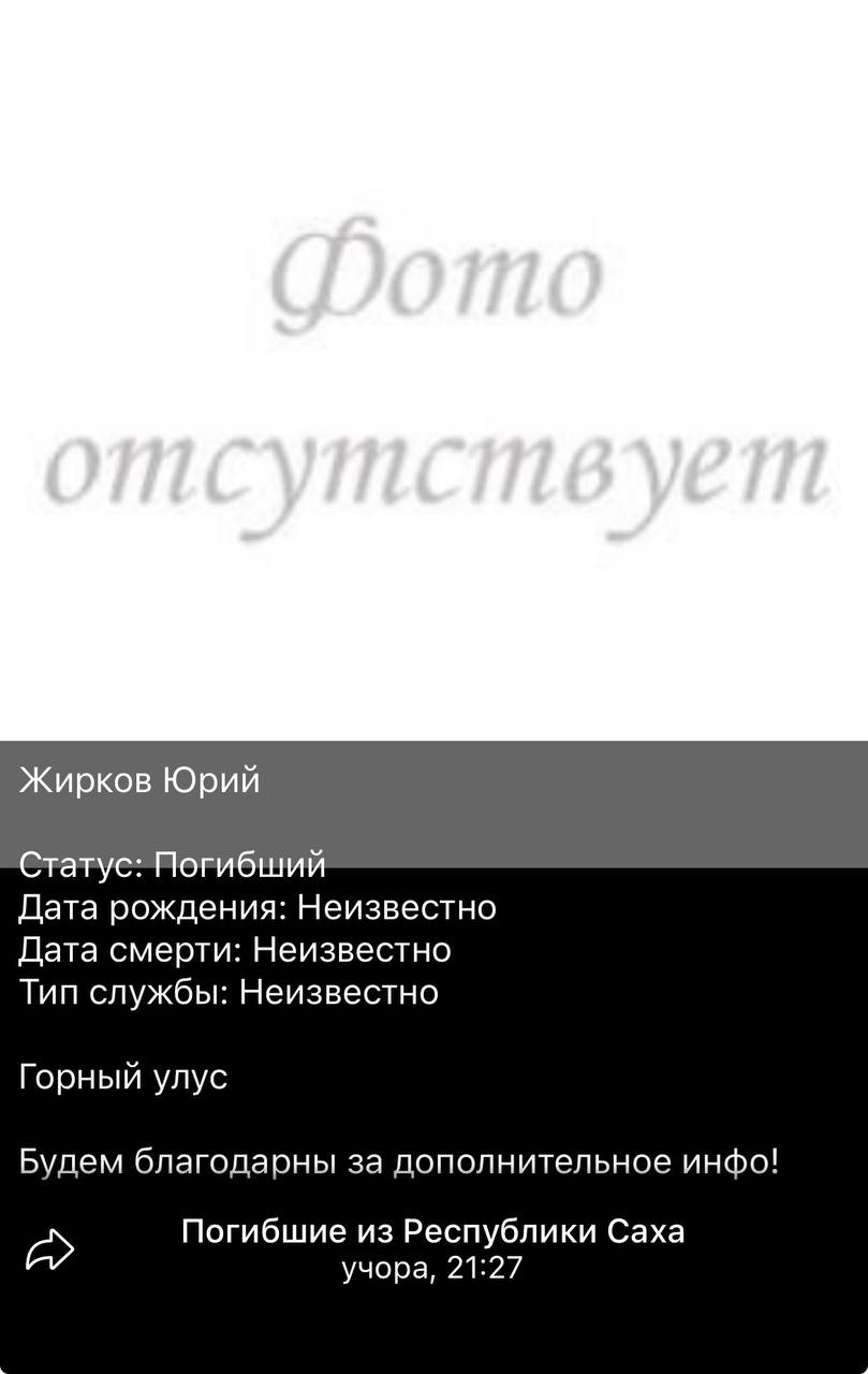 Статус: Подробные данные по данному погибшему получены и обрабатываются.