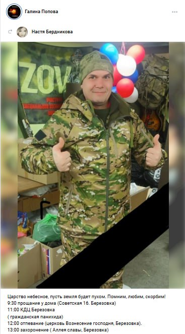 Дата сообщения о гибели: