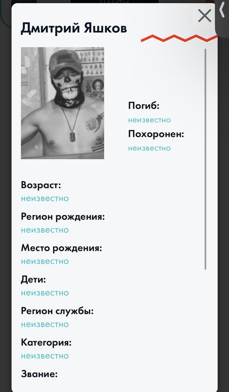 Статус: Подробные данные по данному погибшему получены и обрабатываются.
