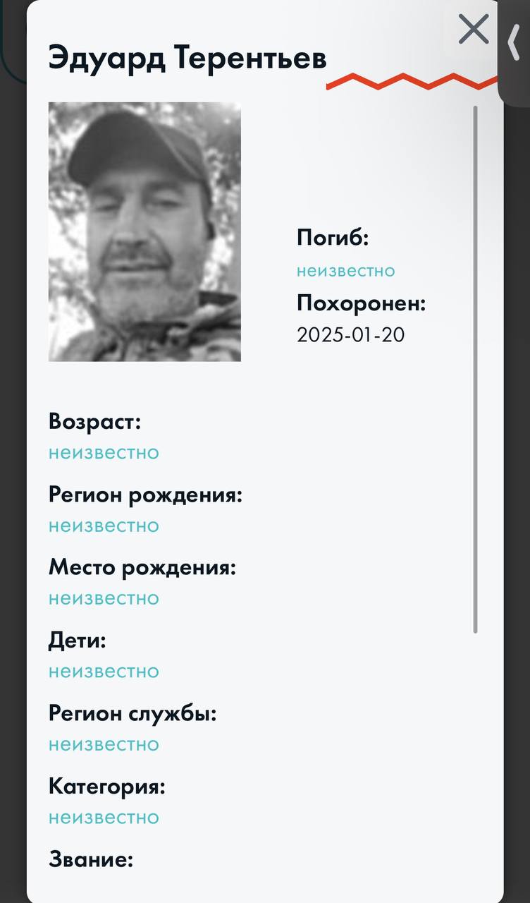 Статус: Подробные данные по данному погибшему получены и обрабатываются.