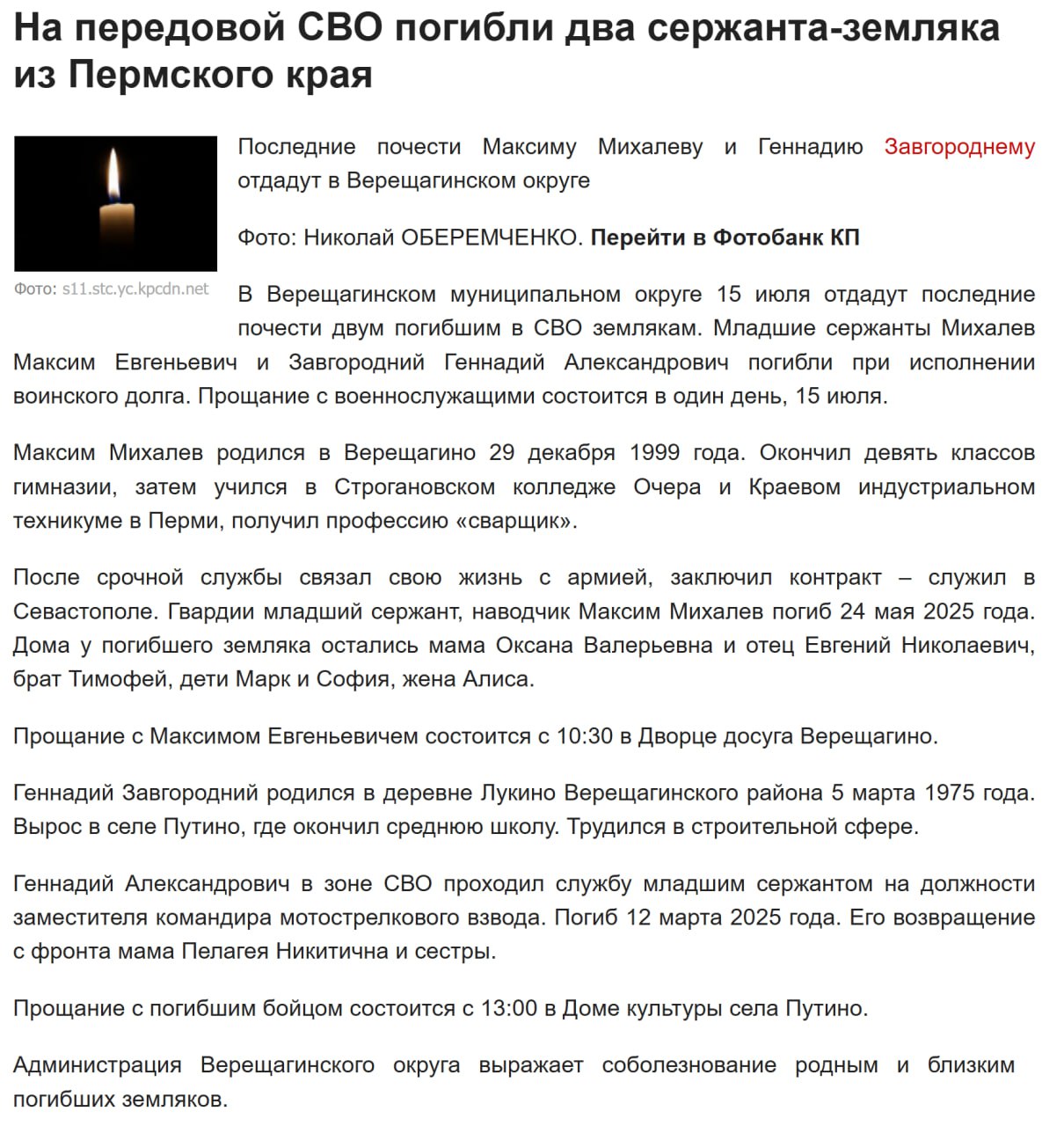 Дата сообщения о гибели: