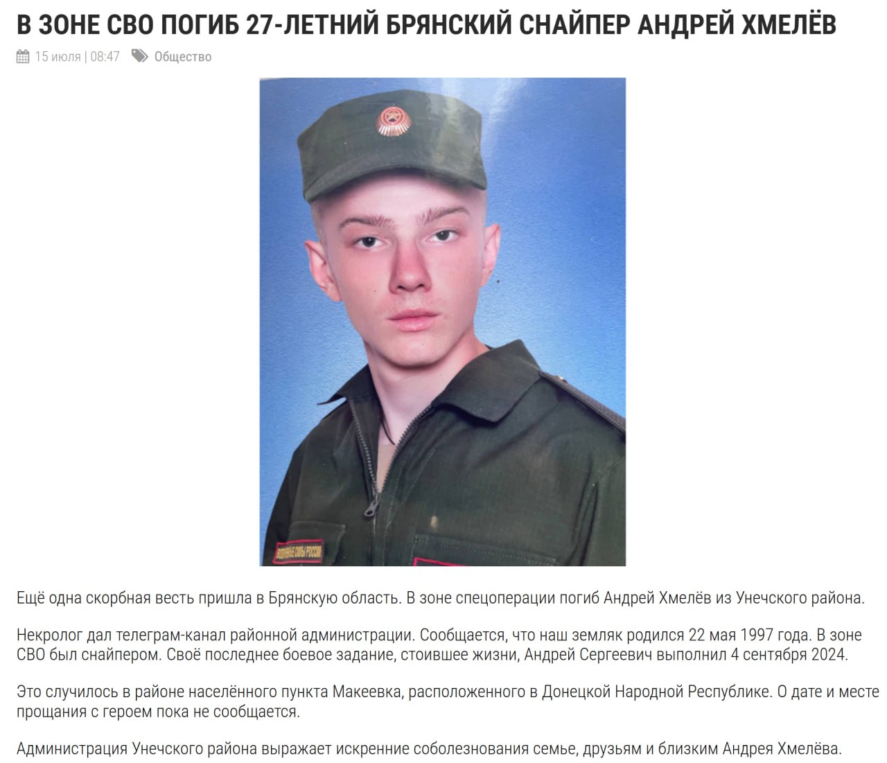 Дата сообщения о гибели: