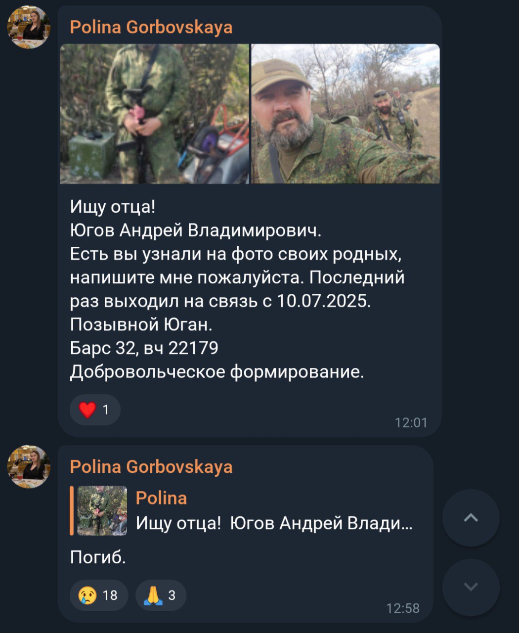 Дата сообщения о гибели:
