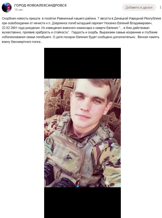 Дата сообщения о гибели: