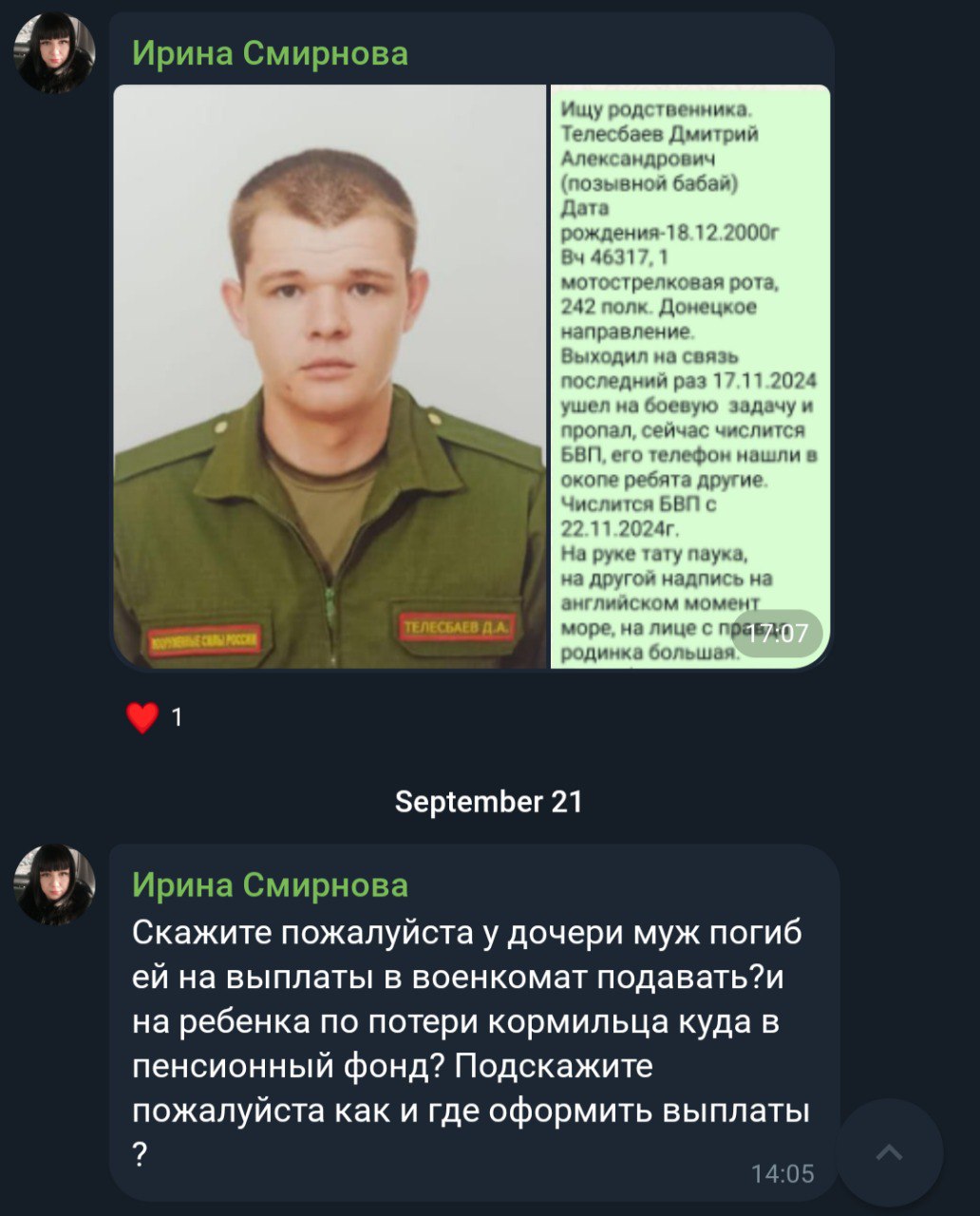 Дата сообщения о гибели:
