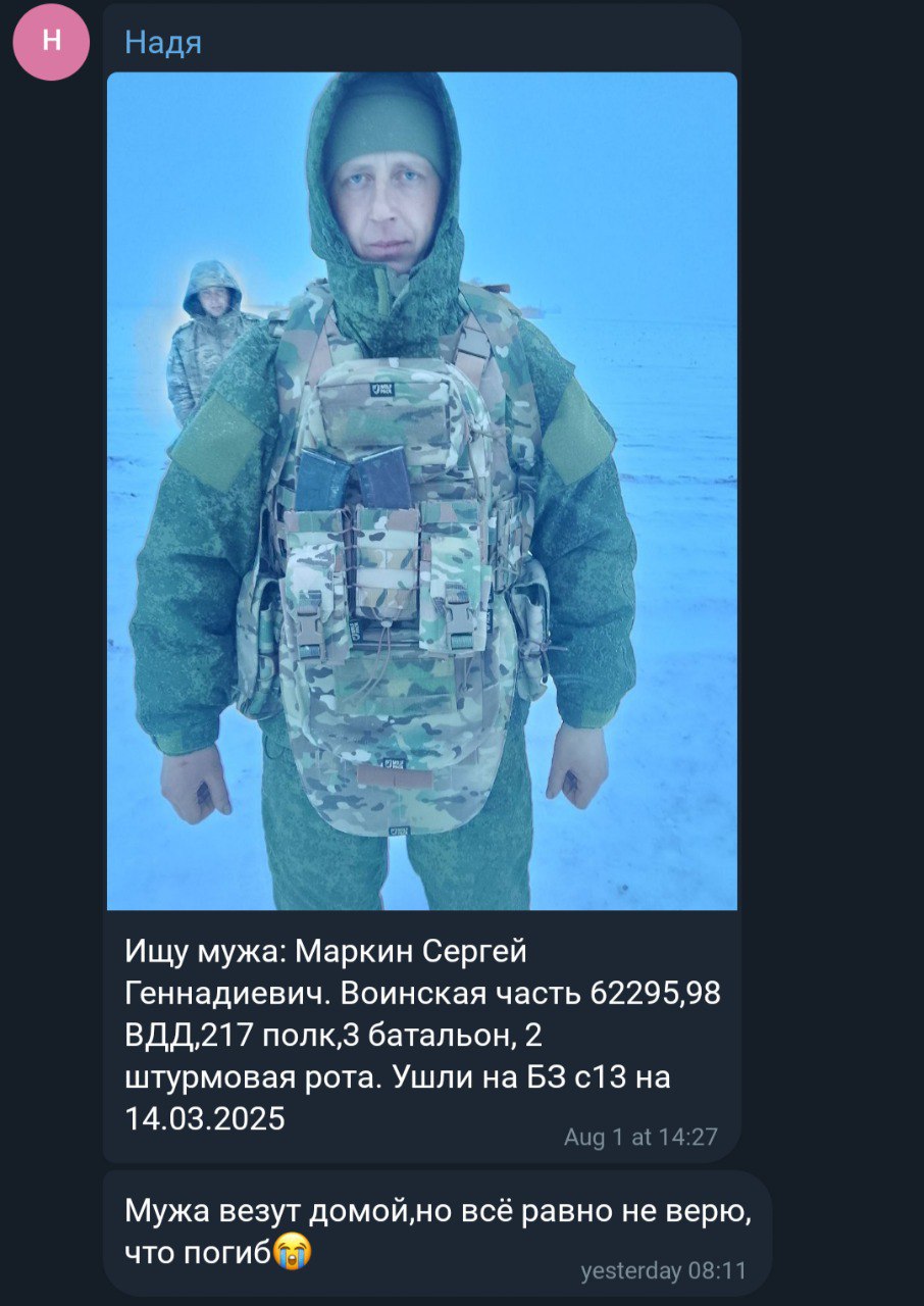 Скриншот сообщения о гибели