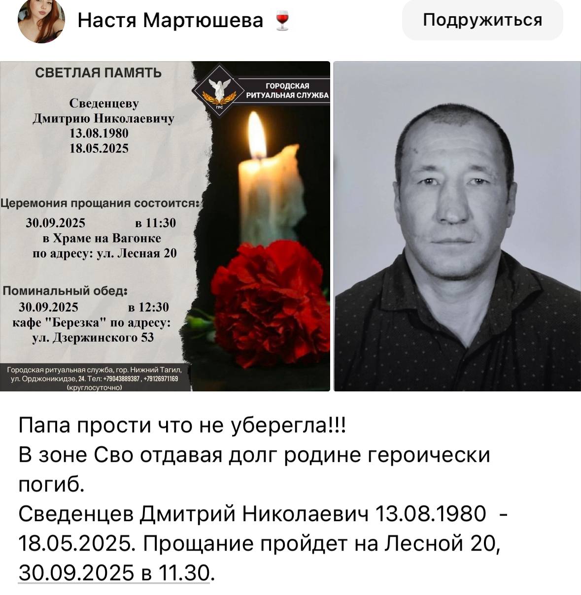 Дата сообщения о гибели: