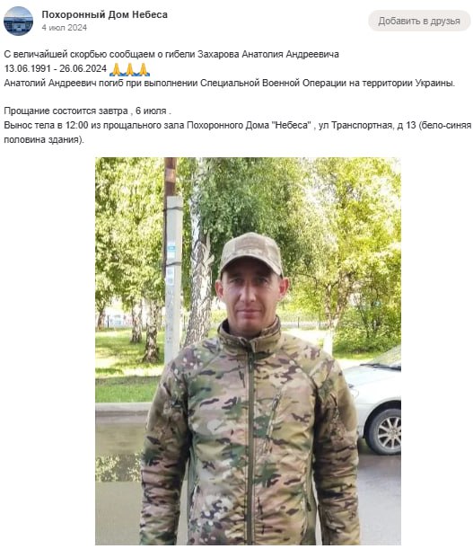 Дата сообщения о гибели: