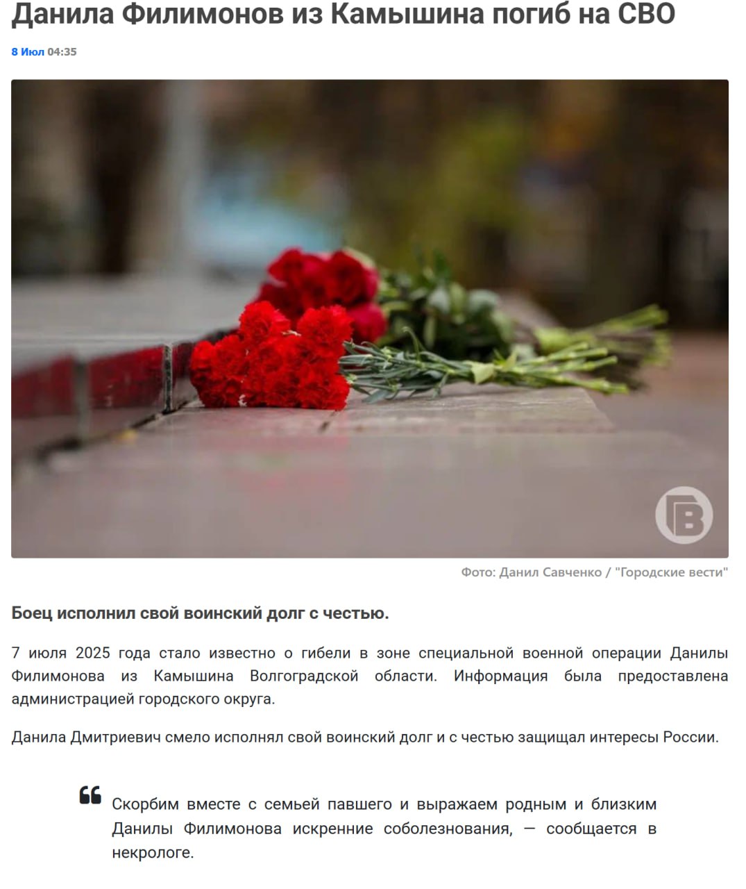 Дата сообщения о гибели: