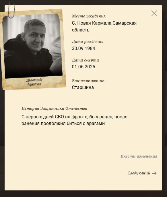 Статус: Подробные данные по данному погибшему получены и обрабатываются.