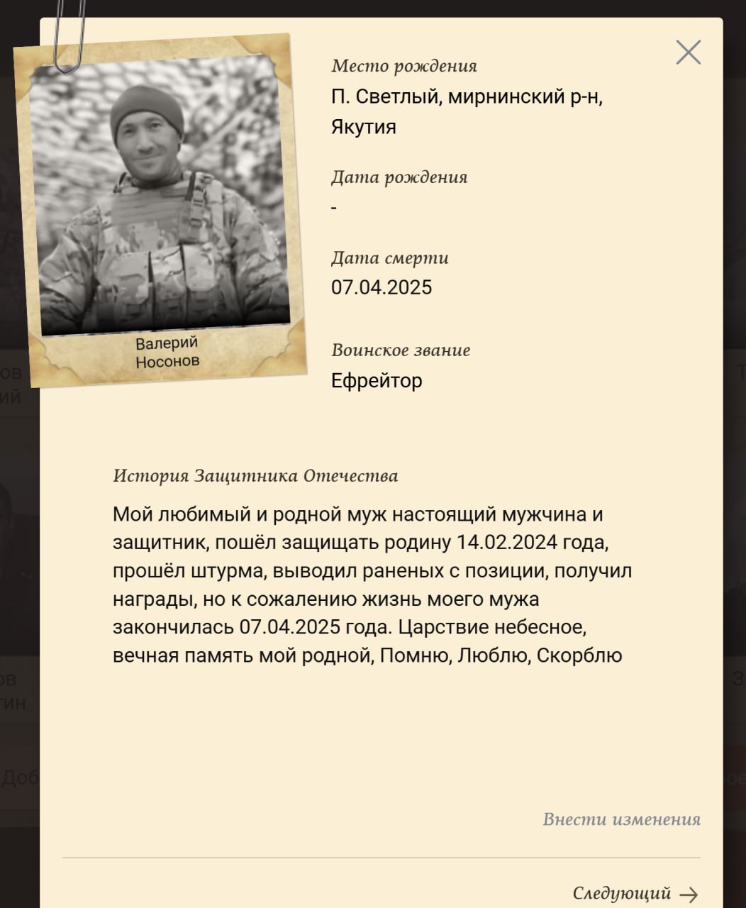 Статус: Подробные данные по данному погибшему получены и обрабатываются.