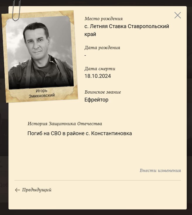 Статус: Подробные данные по данному погибшему получены и обрабатываются.