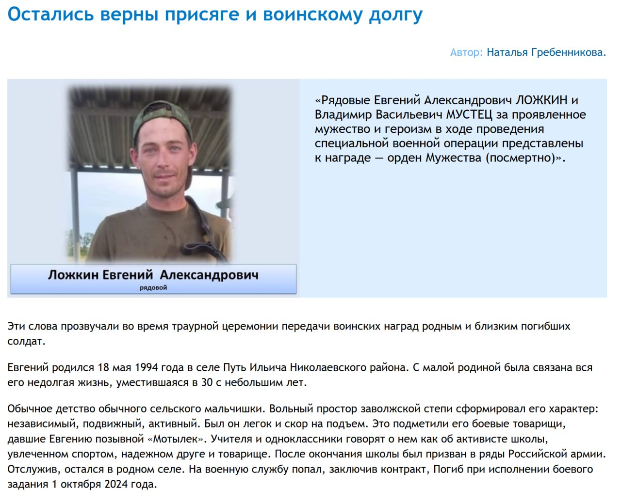 Дата сообщения о гибели: