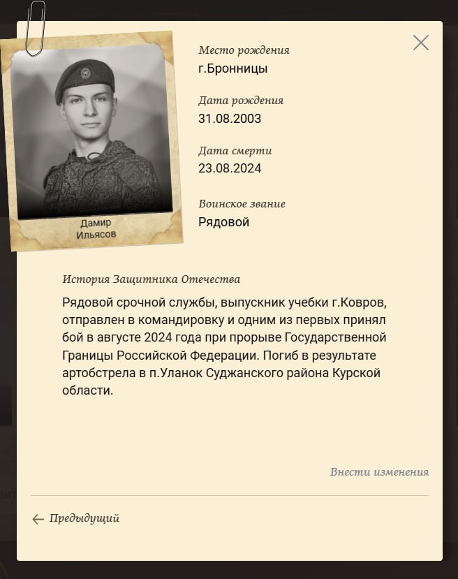Статус: Подробные данные по данному погибшему получены и обрабатываются.