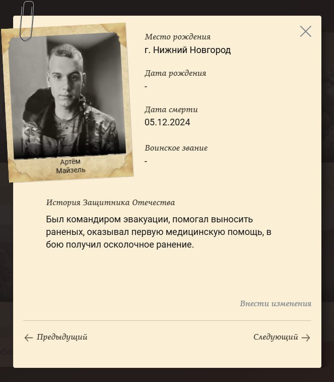 Статус: Подробные данные по данному погибшему получены и обрабатываются.