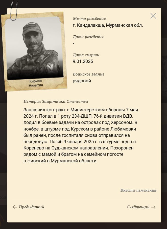 Статус: Подробные данные по данному погибшему получены и обрабатываются.