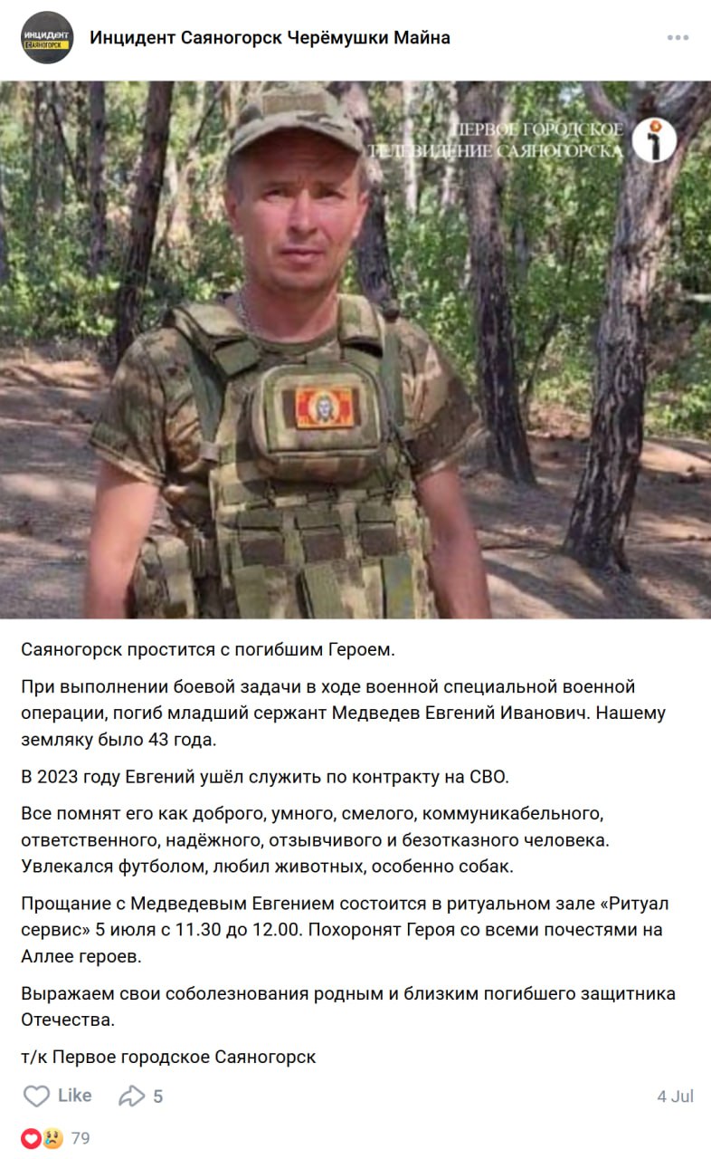 Скриншот сообщения о гибели