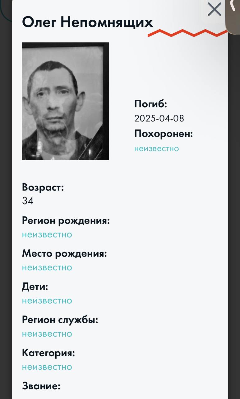 Статус: Подробные данные по данному погибшему получены и обрабатываются.