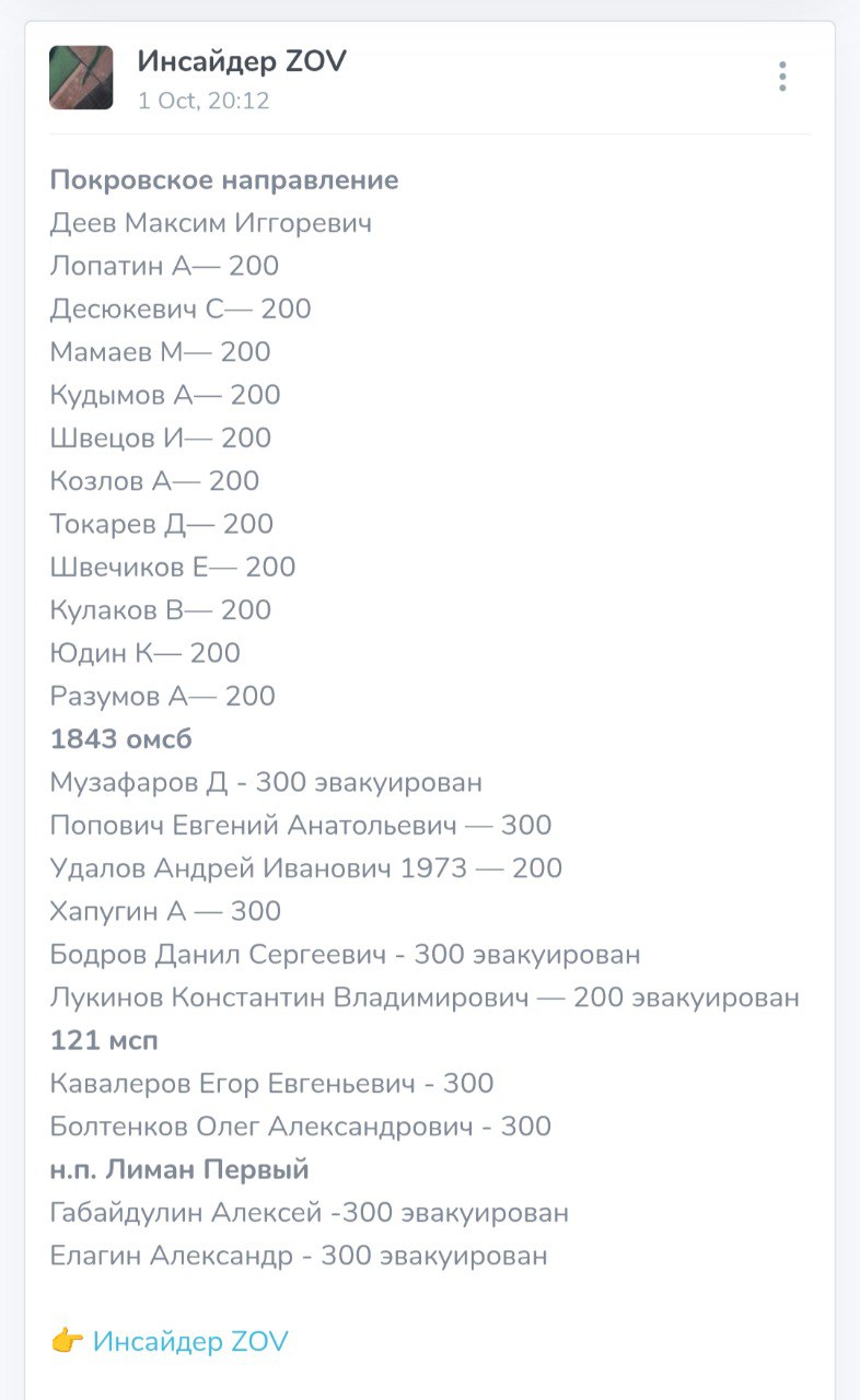 Скриншот сообщения о гибели