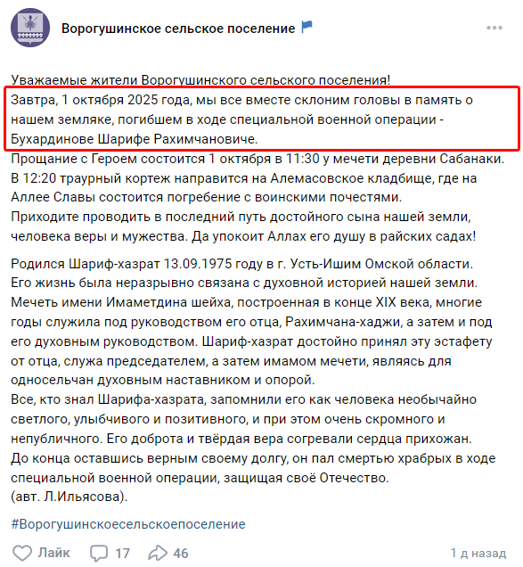 Скриншот сообщения о гибели