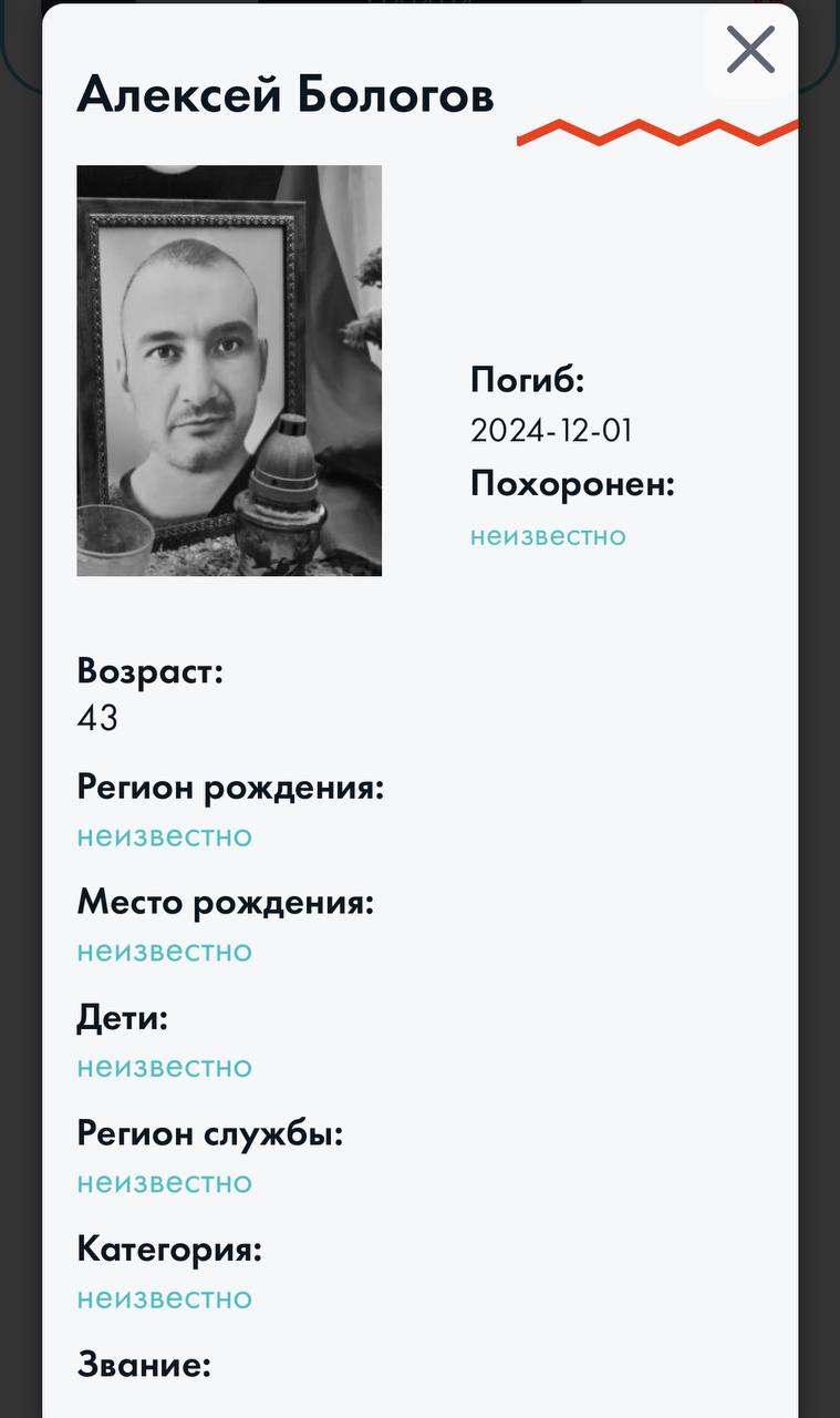 Статус: Подробные данные по данному погибшему получены и обрабатываются.