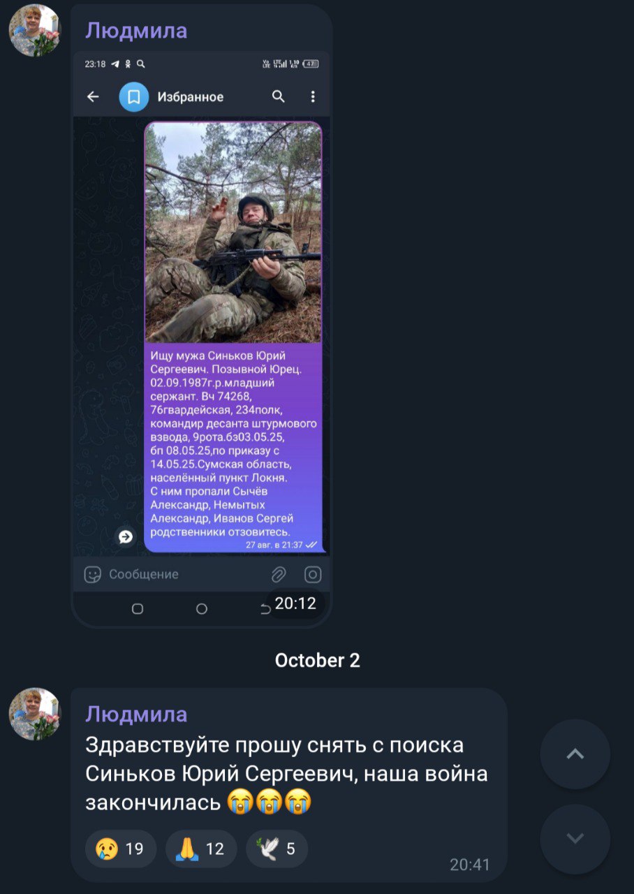 Дата сообщения о гибели: