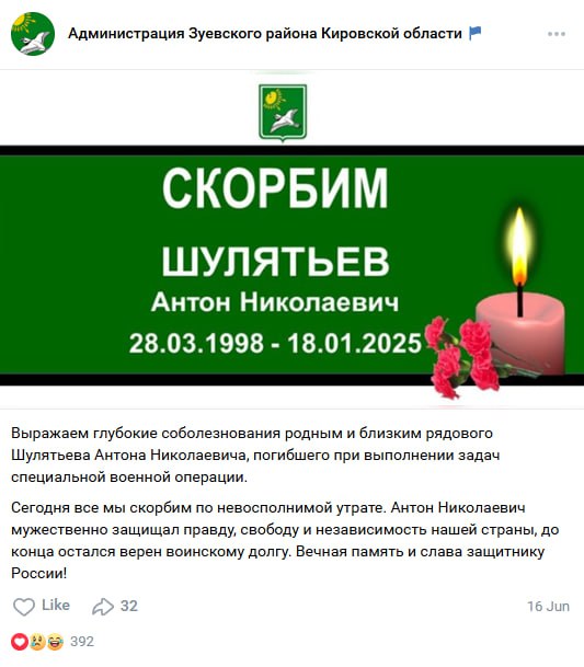Дата сообщения о гибели: