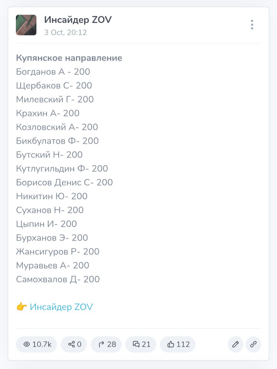 Статус: Подробные данные по данному погибшему получены и обрабатываются.