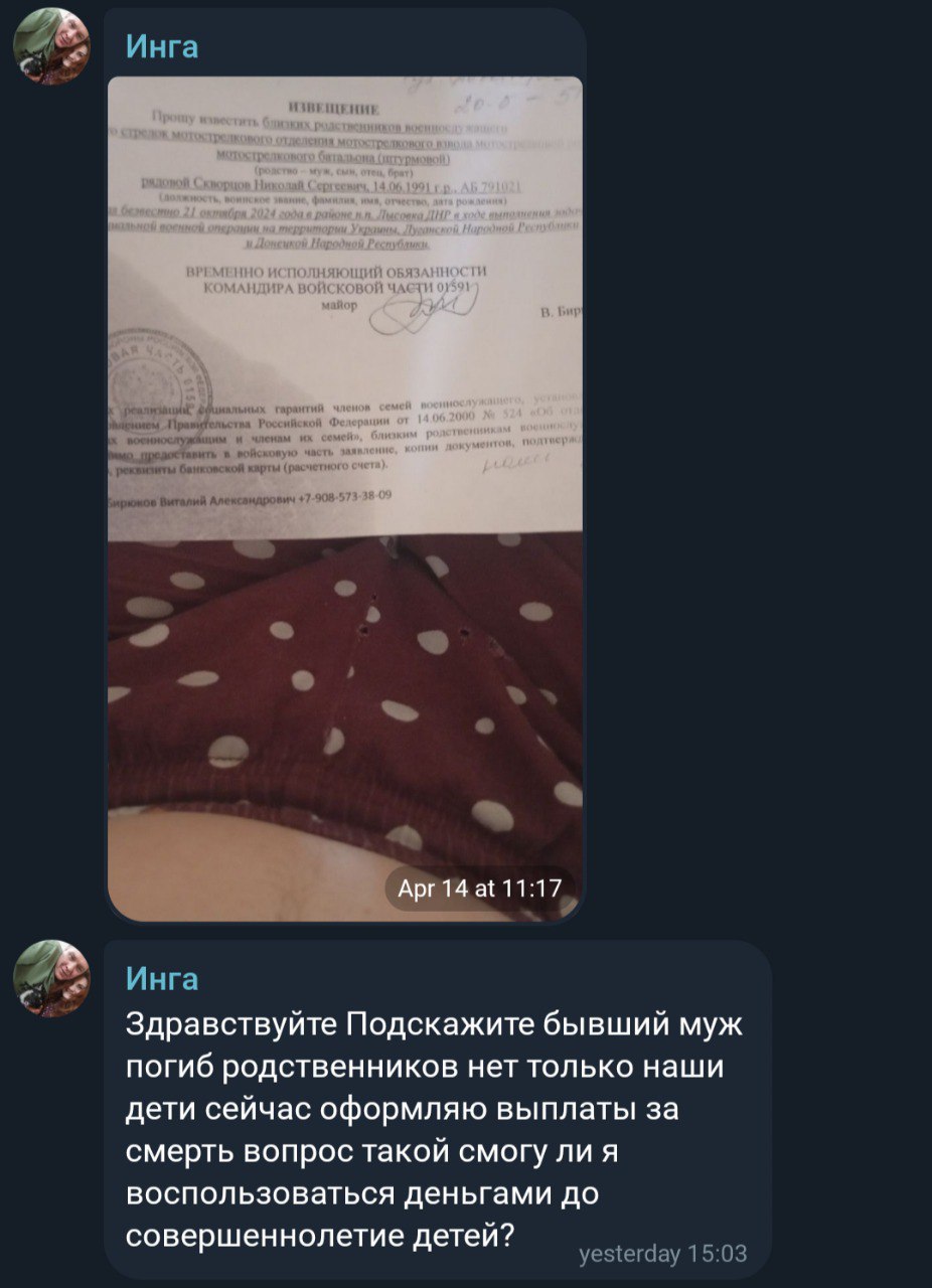 Дата сообщения о гибели: