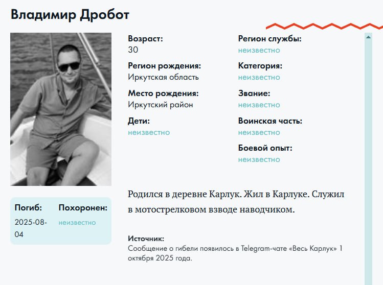 Статус: Подробные данные по данному погибшему получены и обрабатываются.